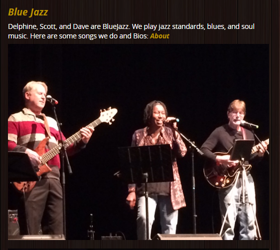 Delphine, Scott, and Dave love to play a wide variety of music for your listening and dancing pleasure!